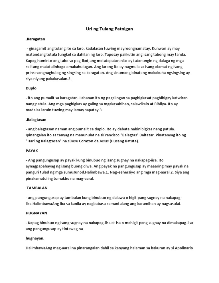 Ginaganap sa bakuran ng bahaymay dalawang papag sa magkabila ng isang mesang may sari-saring pagkaing-nayon Magkaharap ang pangkat ng binata at dalaga Isang matanda ang magpapasimula ng laro. KARAGATAN Pag tumigil na yung tabo pipiliin ang lalaking tinturo nito. Dahil dito nakatulong sila sa pagunlad ng mga wikang Pilipino.