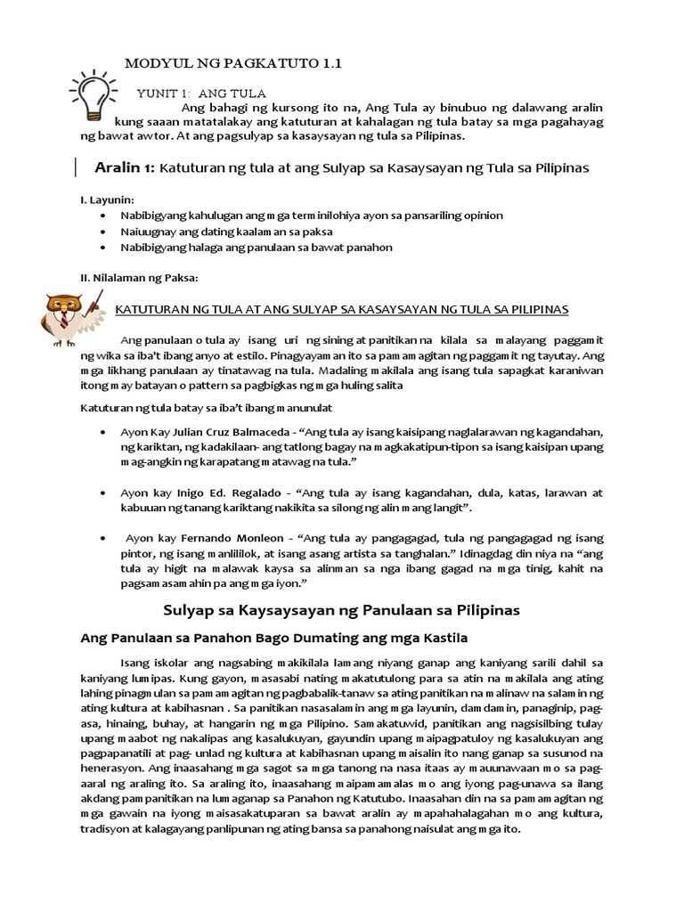 Aralin 1 Modyul Ng Pagkatuto 1 1