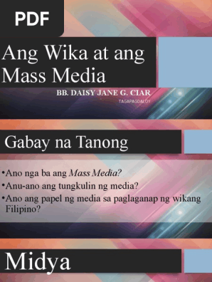 Ang mass media ay impormasyong nagpapasalin-salin sa marami. ناصر منجالينو اللغات- فلبيني. Kung tutuusin walang namang masama kung.